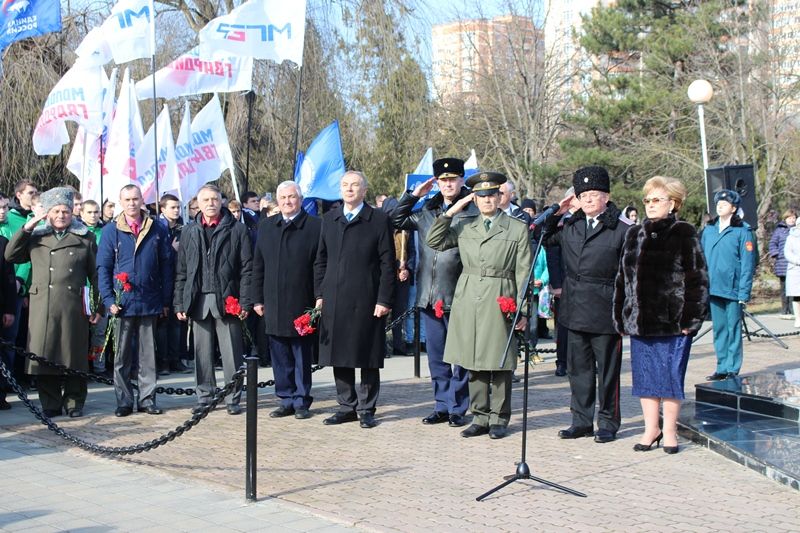 У обелиска «Сынам Кубани, павшим в Афганистане» собрались более трех с половиной тысяч человек. Память погибших героев почтили минутой молчания, под гимны России и Кубани присутствующие возложили венки, гирлянды и цветы. После залпов салютующей группы Краснодарского высшего военного авиационного училища летчиков им. Серова торжественным маршем прошли подразделения военнослужащих частей Краснодарского гарнизона, воспитанников Краснодарского президентского кадетского училища.