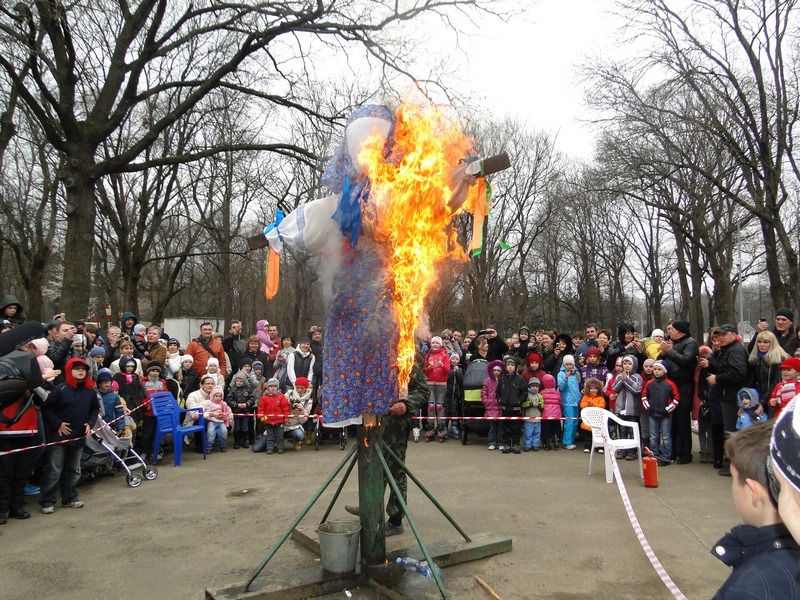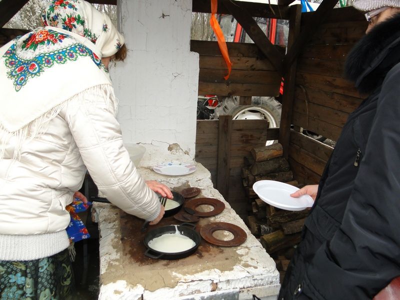 На площади парка развернулись столы с угощениями. Несколько сортов блинов с разными начинками, мед, варенье и сладости. Всех желающих угостили горячими блинами. Для этого в парке топили русскую печь и выпекали главное блюдо праздника. Кульминацией «Широкой Масленицы» стало сжигание чучела. Этот старинный обряд символизирует прощание с зимой и скорый приход весны.