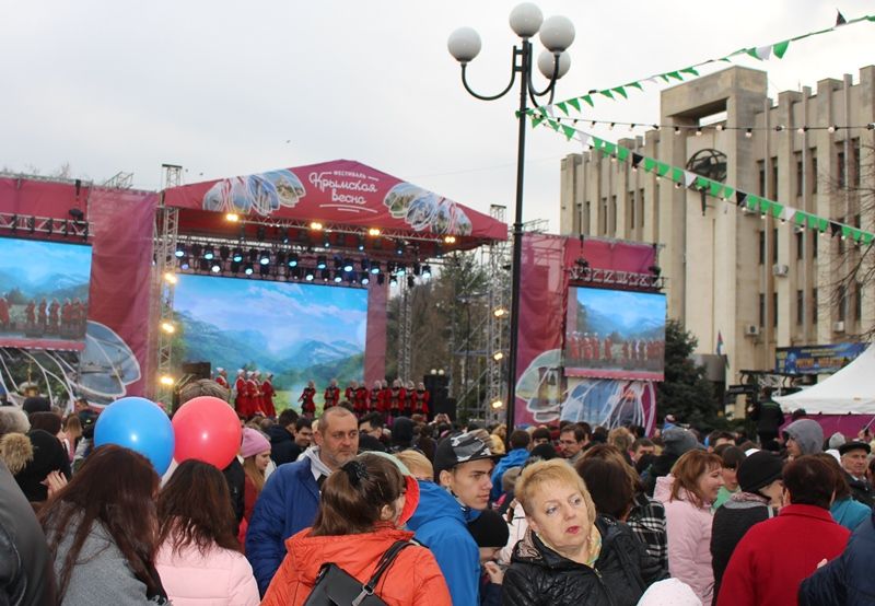 Торжественное мероприятие состоялось на Пушкинской площади. Творческие коллективы Краснодара подарили собравшимся концерт. Здесь же на площади работала ярмарка товаров крымских производителей, где можно было продегустировать блюда местной кухни