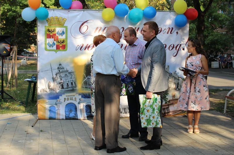 Праздник начался с чествования самых активных жителей дома. Памятными подарками отметили общественников, председателей органов ТОС, которые активно участвуют в жизни округа, организовывают субботники по месту жительства, уделяют особое внимание санитарному порядку на внутридворовых территориях. Особо отметили супружескую пару, отметившую в этом году золотую свадьбу.