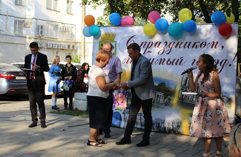 Поздравить жителей этой многоэтажки с предстоящим Днем города приехали заместитель главы администрации Центрального округа Артем Губский, депутат Законодательного Собрания Краснодарского края Денис Хмелевской.