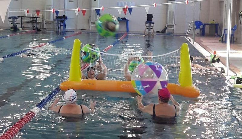 Несмотря на ограниченные возможности здоровья, инвалиды активно выполняли поставленные тренером задачи и даже в конце мероприятия сыграли в водный волейбол.
