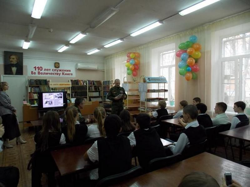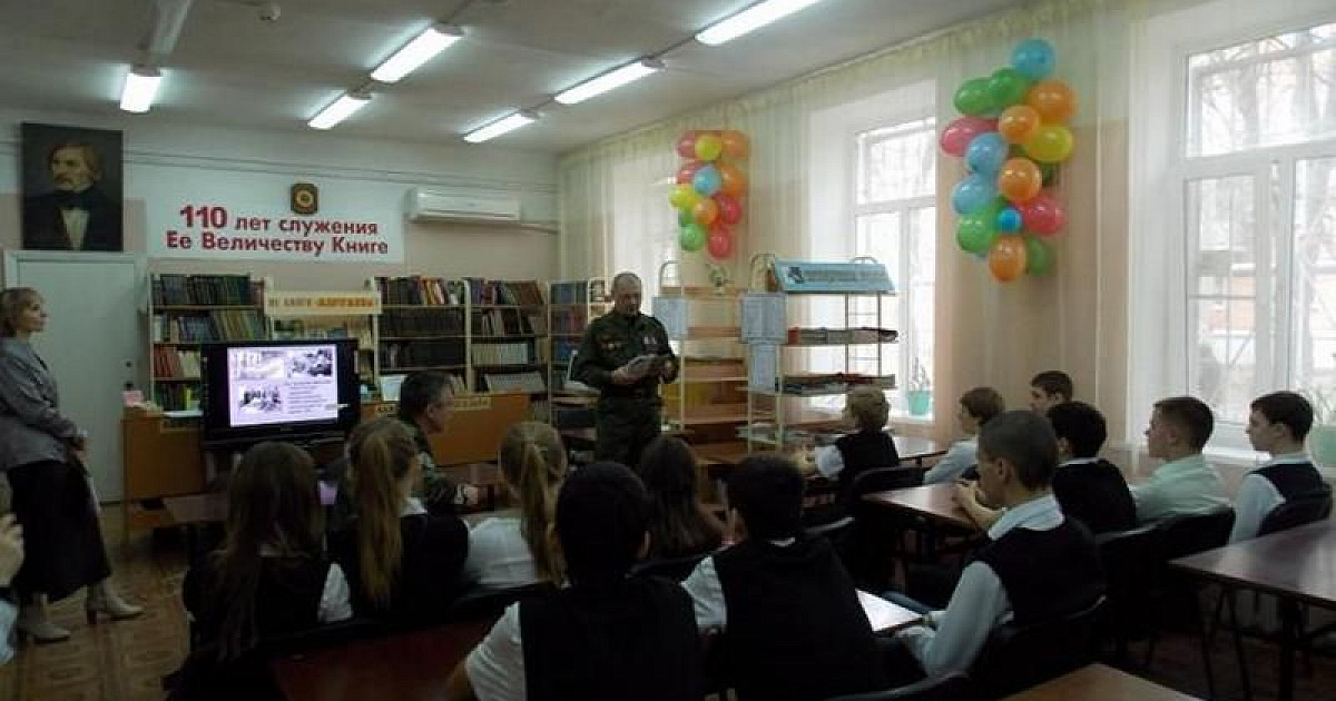 19 февраля 2013В библиотеке имени Н.В.Гоголя продолжается цикл мероприятий в рамках месячника военно-патриотической и оборонно-массовой работы. Беседы со школьниками проводят участники Афганской и Первой Чеченской войн.