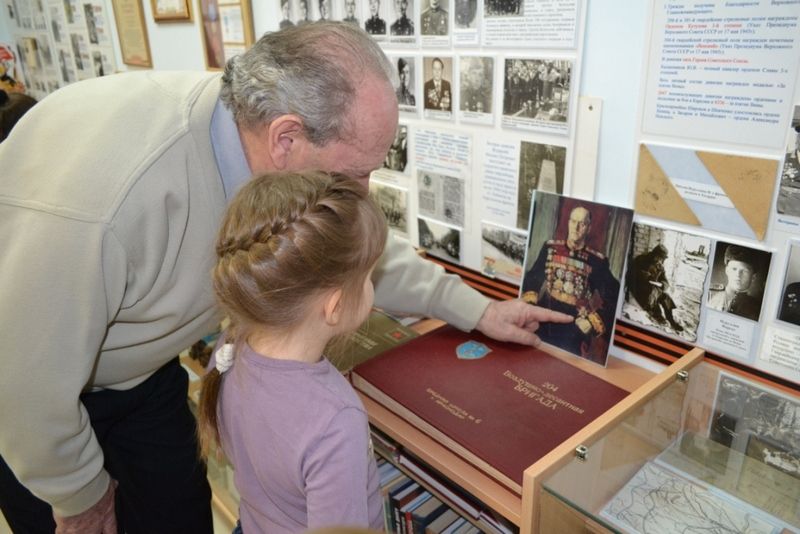 Руководитель музея Олег Шахметов рассказал ребятам о боевых подвигах наших десантников в годы Великой Отечественной войны. Дети внимательно и с большим любопытством рассматривали экспонаты, представленные в музее. Особенно им понравилась диорама «Майкопский десант», выполненная заслуженным художником России А.А.Калугиным.