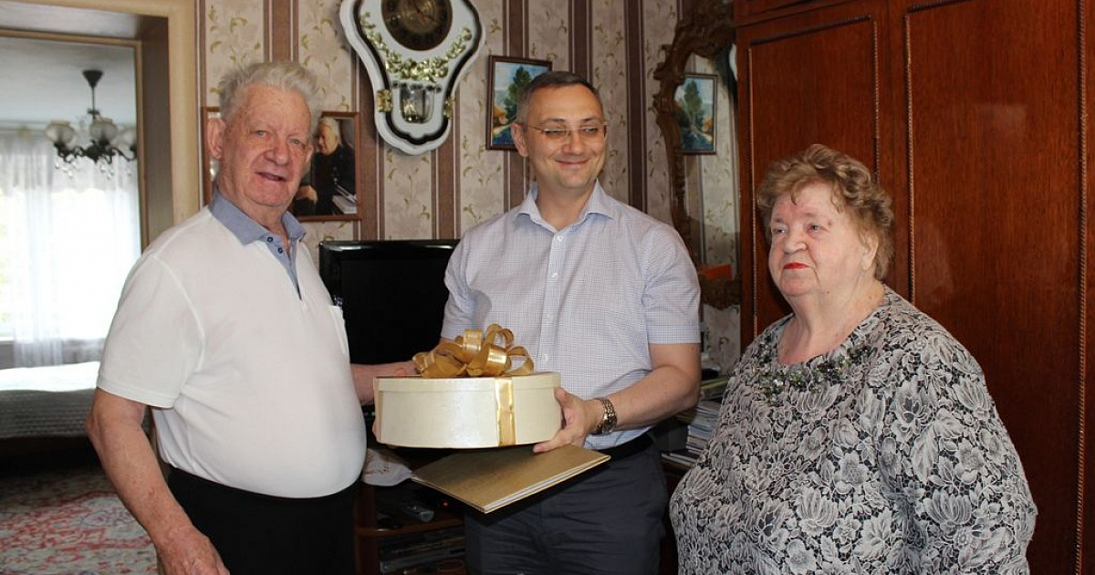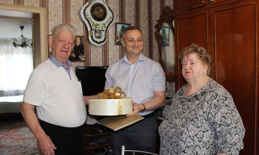Прощаясь с юбилярами, Сергей Громыко выразил уверенность в том, что супругам хватит здоровья и сил вместе встретить еще не один юбилей, а также пожелал им праздничного настроения, семейного счастья и тепла.