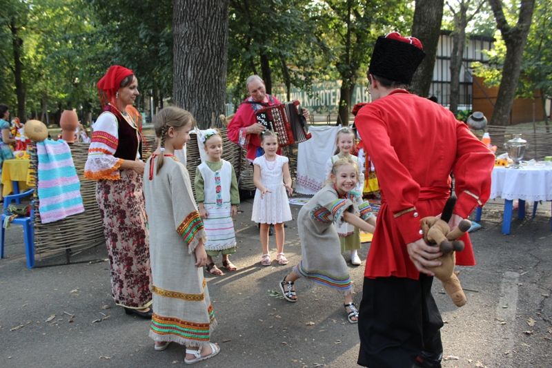 Рядом с большой сценой развернулся кубанский хуторок, где казак и казачка устраивали веселые игры для всех детей, пришедших на праздник. Творческие коллективы округа подарили гостям свои выступления, которые в этот день были посвящены родному краю.