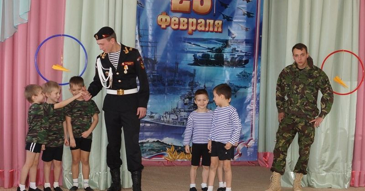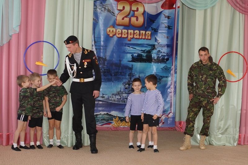 Солдаты рассказали ребятам о воинской службе, объяснили, что нужно делать сейчас, чтобы через несколько лет вступить в ряды доблестных защитников Родины. Дошкольники отработали некоторые навыки, которые могут пригодиться им в армии, продемонстрировали ловкость и силу. В заключение дети поздравили гостей с наступающим праздником.