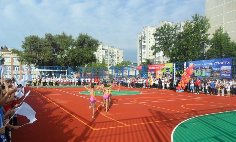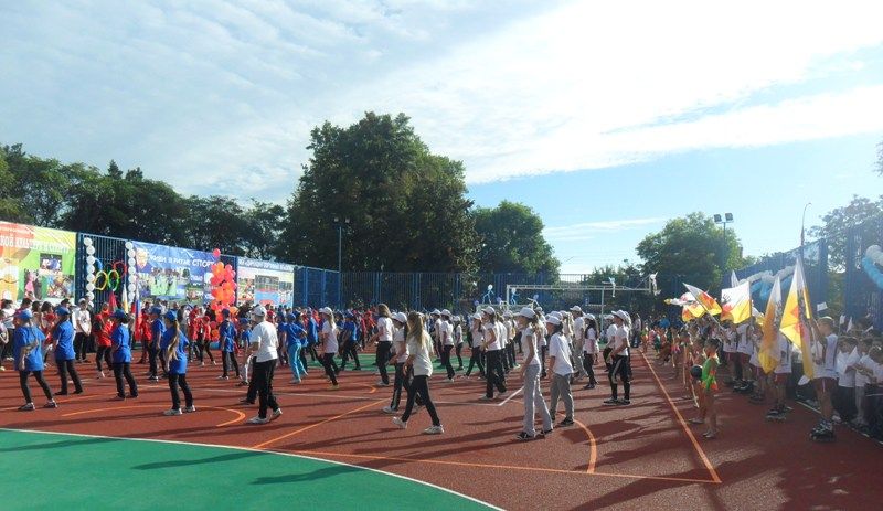 Почетные гости разрезали красную ленточку и дали старт празднику. На площадку вышли юные спортсмены, победители и призеры многих спортивных соревнований и турниров. Учащиеся школы показали настоящее феерическое шоу.