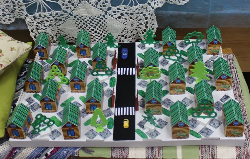 Работы многих умельцев ТОСа в этот день были представлены в помещении территориального центра. Изюминкой экспозиции стал макет квартала мастеров. В маленькие домики, которые после встречи гостям предложили забрать на память, жители квартала вложили частичку своих умений – мастер-классы по изготовлению различных новогодних украшений, записанные на флеш-карту.
