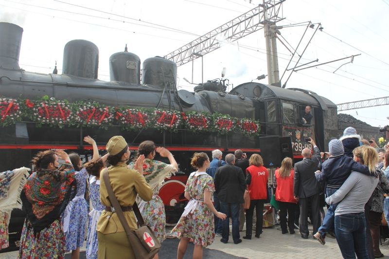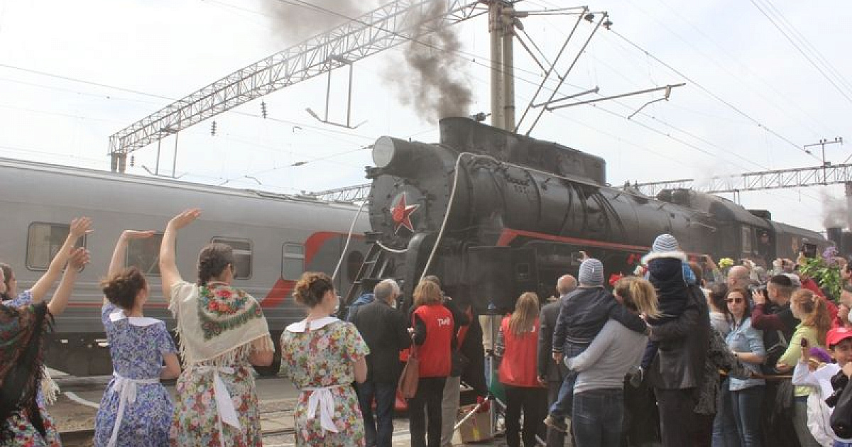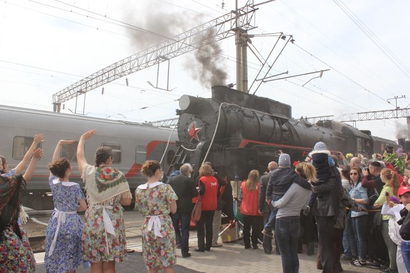 В кубанской столице ретро-поезд стоял больше 2 часов. Цветы, оркестр и праздничный концерт творческих коллективов создали атмосферу всеобщего ликования.