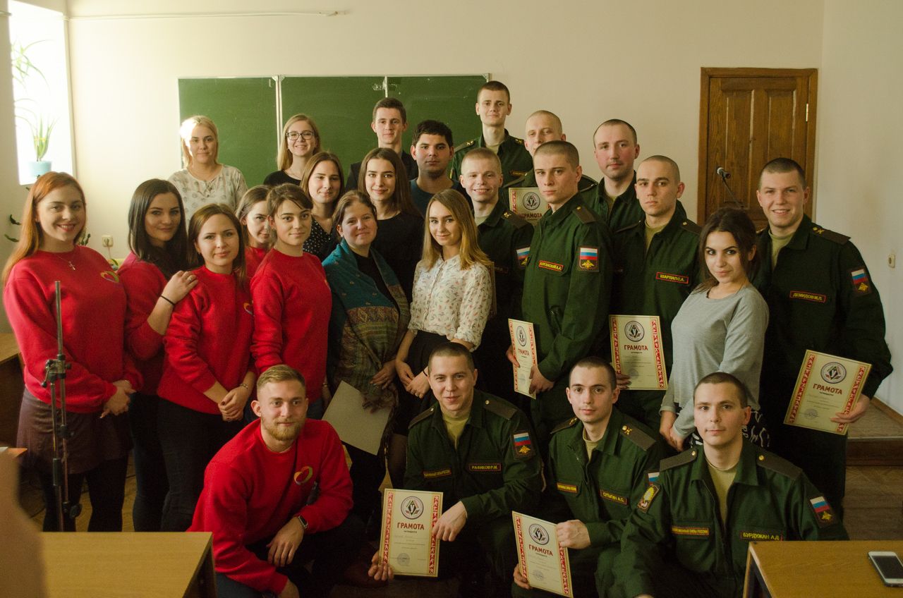 8 февраля 20187 февраля в КГУФКСТ прошел вечер военно-патриотической песни «Споемте, друзья», на котором студенты университета совместно с курсантами Краснодарского высшего военного училища имени генерала армии С.М.Штеменко показали номера на военную тематику.