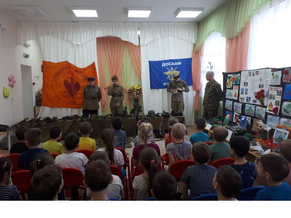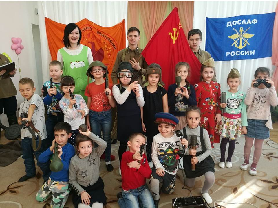 12 февраля состоялась выставка оружия Великой Отечественной войны. Выставку организовал ДОСААФ совместно с клубом исторического фехтования «Святослав». Члены клуба показали и рассказали дошкольникам, каким оружием пользовались советские и немецкие солдаты. Некоторые экспонаты выставки ребята даже смогли подержать в руках.