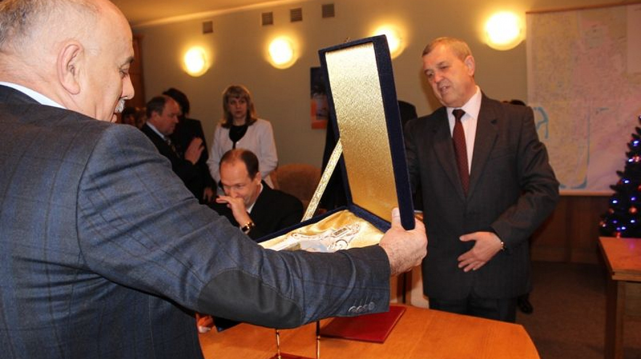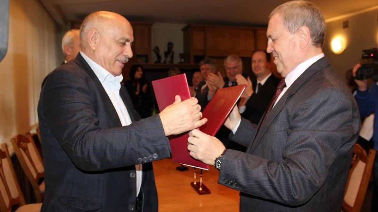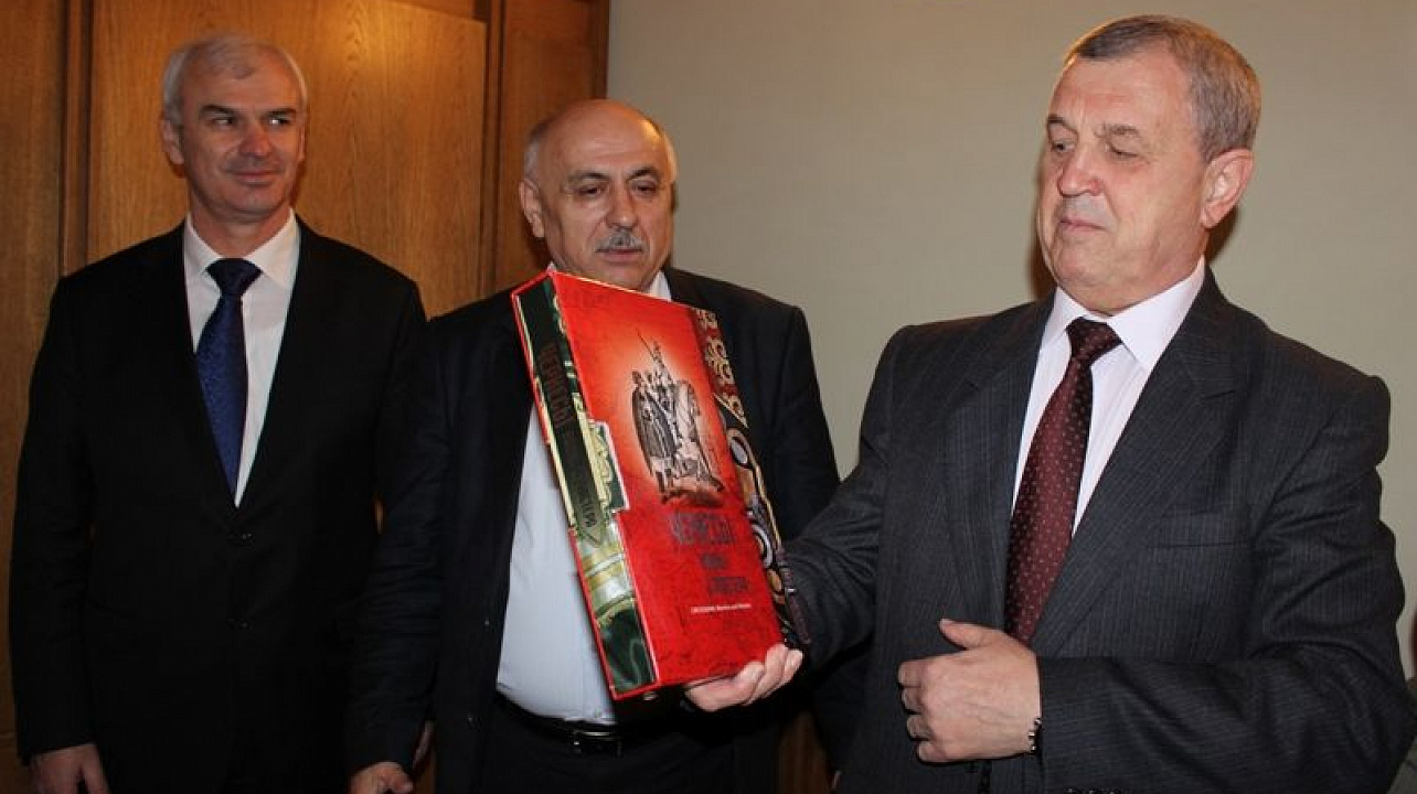 После официального подписания глава администрации Центрального округа Вячеслав Литвинов и первый заместитель главы администрации Тахтамукайского района Ярахмед Ярахмедов обменялись памятными подарками.