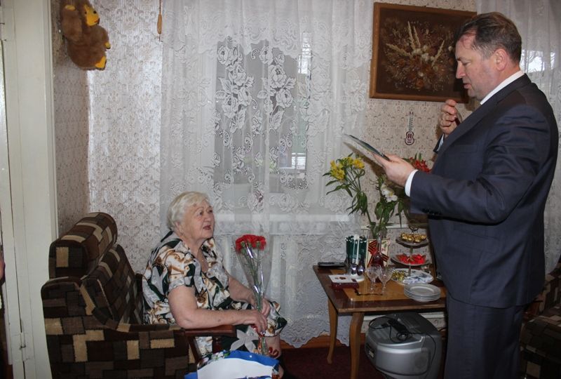Александр Викторович пожелал Надежде Сергеевне и Нине Власовне крепкого здоровья, оптимизма, благополучия и вручил им цветы и ценные подарки.