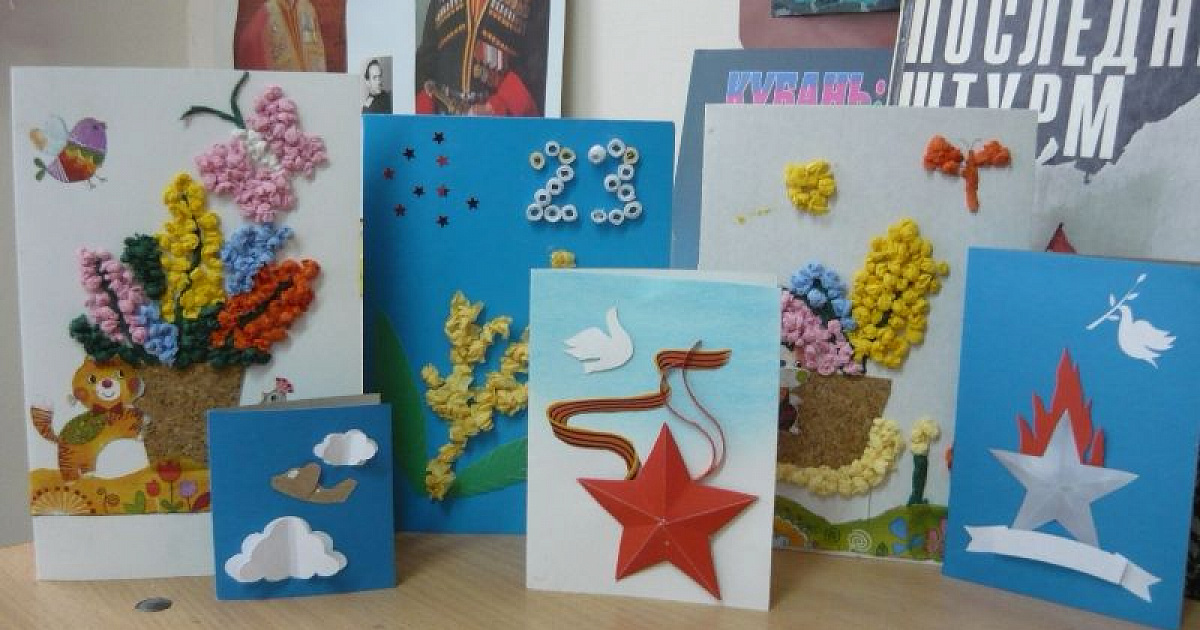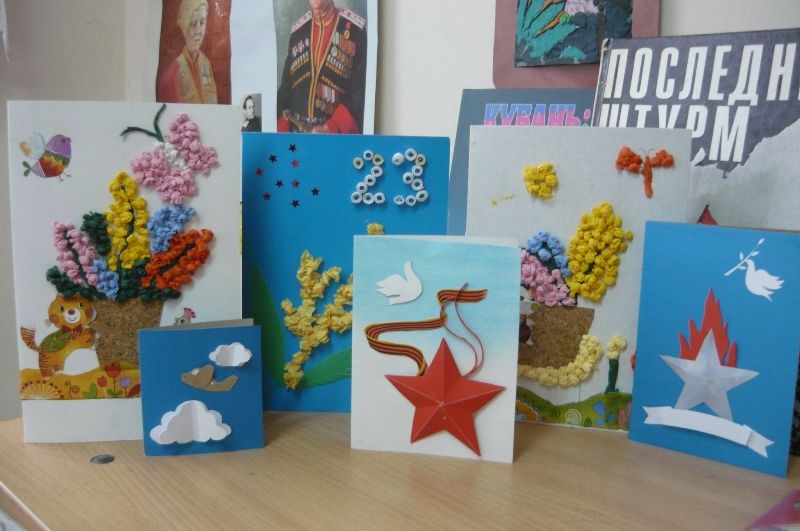 В акции уже приняло участие более 300 мальчишек и девчонок. Они своими руками сделали праздничные открытки для ветеранов, используя различные материалы: белую и цветную бумагу, картон, бисер. На многих открытках изображён голубь - символ мира и грядущих празднований 70-летия Великой Победы.
