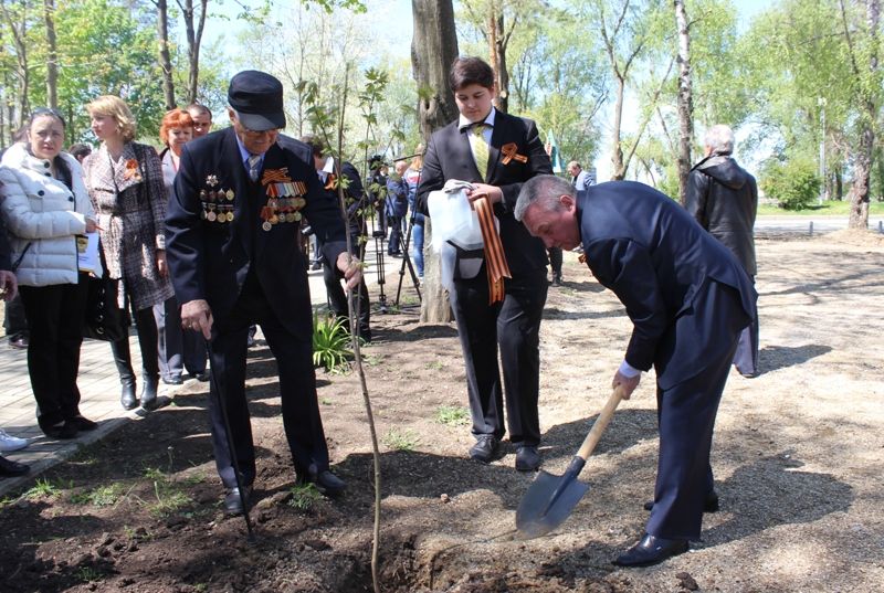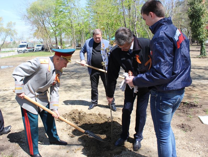 Далее участники акции - ветераны Великой Отечественной войны, депутаты Законодательного собрания Краснодарского края и городской Думы, члены молодежных объединений и общественных организаций заложи аллею Победы, высадив 70 саженцев серебристых кленов. На каждое дерево завязали георгиевские ленточки. Вместе с фронтовиками деревья посадили Владимир Бекетов, Владимир Евланов, Вера Галушко.