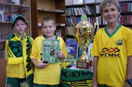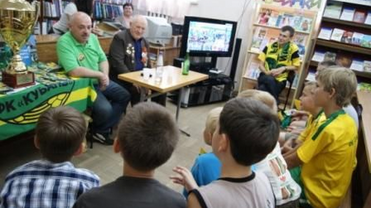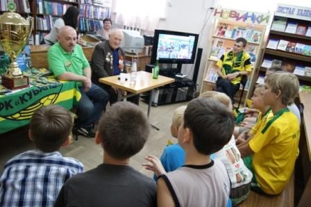 24 мая 2012В рамках акции "Кубань талантами богата" к 75-летию образования Краснодарского края, 6-го этапа краевой акции "Читать о спорте книги надо – мы ждем тебя олимпиада", проходящей под лозунгом празднования 100-летия кубанского футбола в детской библиотеке им. С.Я. Маршака, состоялась встреча представителей ФК "Кубань" с читателями библиотеки "У истоков кубанского футбола".