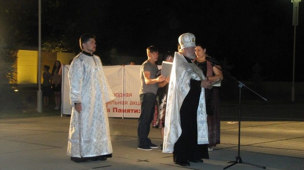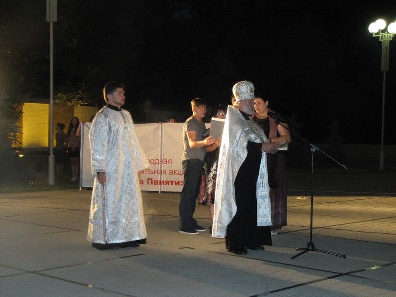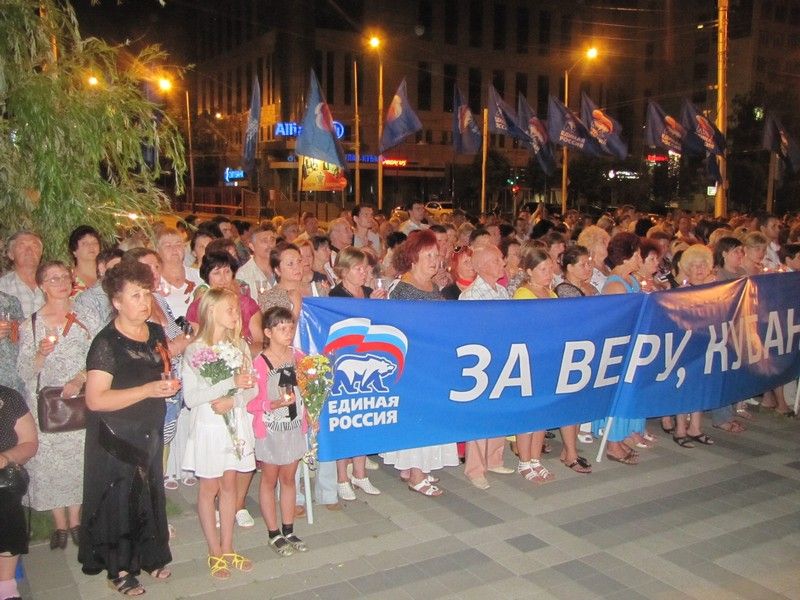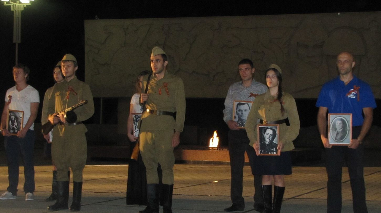 Акция началась с театрализованного представления, краснодарцам показали сценические миниатюры: «Начало войны» и «Письмо», затем отслужили литию о погибших. А потом, по сложившейся традиции, в память о 27 миллионах наших соотечественников, жизни которых унесла война, участники акции зажгли свечи и возложили цветы к Вечному огню.