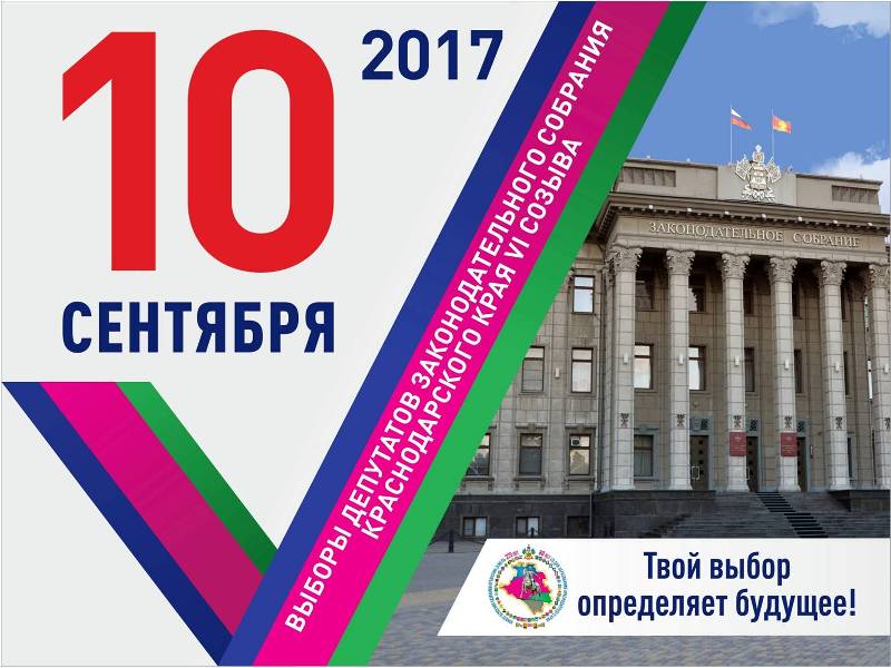 24 июля 201710 сентября 2017 года состоятся выборы депутатов Законодательного Собрания Краснодарского края шестого созыва.