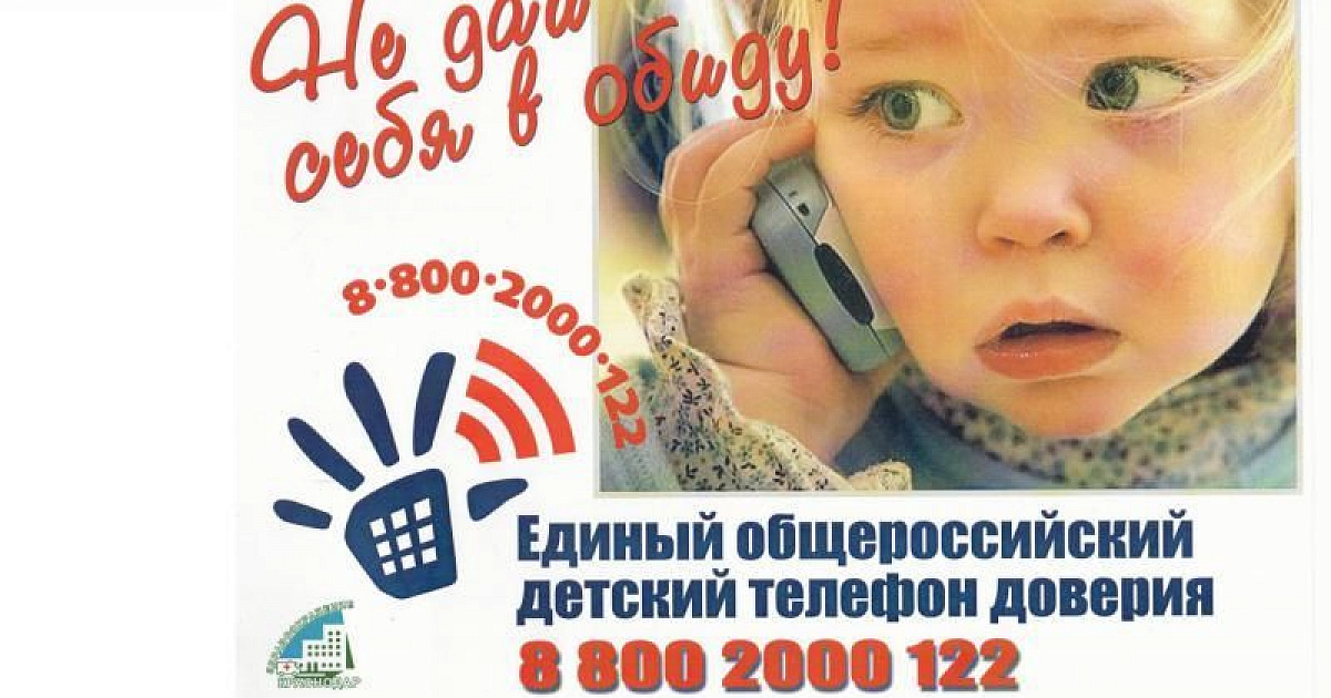 21 августа 2015На территории Краснодарского края работает детский телефон доверия с единым общероссийским телефонным номером 8-800-2000-122. При звонке на этот номер в любом населенном пункте Российской Федерации со стационарных или мобильных телефонов дети, подростки и их родители, иные граждане могут получить экстренную психологическую помощь.