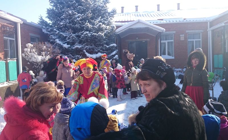 Программа праздника была разнообразной. Детей встречали скоморохи, ростовые куклы, которые всех угощали горячими блинами. Затем дошколята водили хоровод, пели песни о Масленице, играли в конкурсы и викторины. Дети старшей группы подготовили выступление – игру на музыкальных ложках.