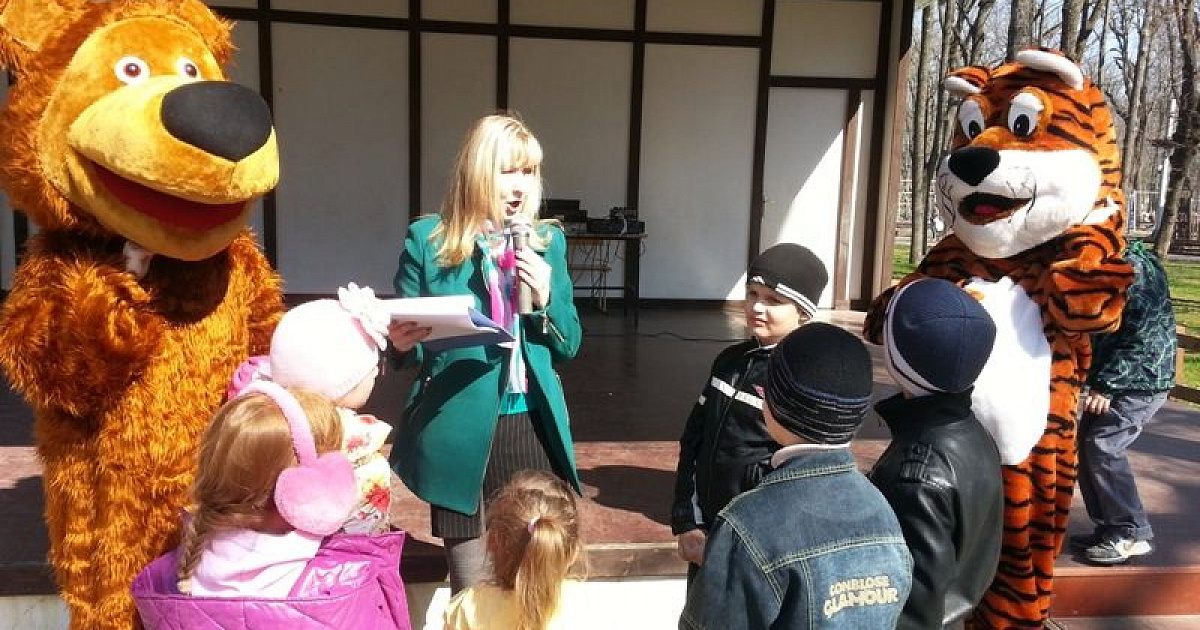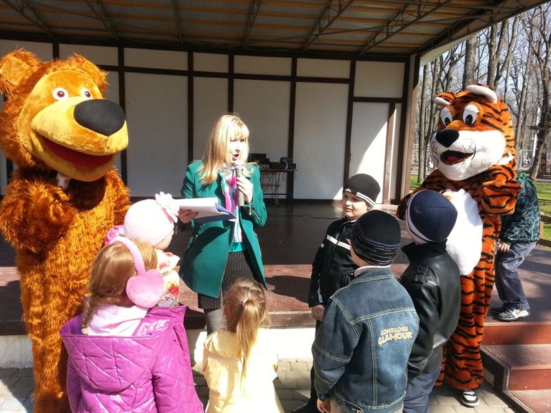 Праздник проходил на центральной площади парка, гостей развлекали ростовые куклы. Здесь же открылась тематическая выставка книг.