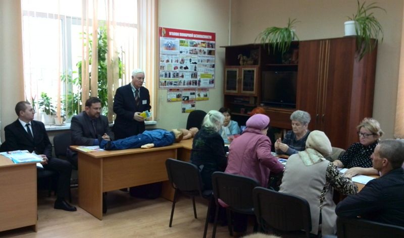 Затем выступил преподаватель МКОУ «Курсы гражданской обороны», который осветил вопросы противопожарной безопасности в весенне-летний период и показал на специальном манекене, как оказывать доврачебную помощь пострадавшим.