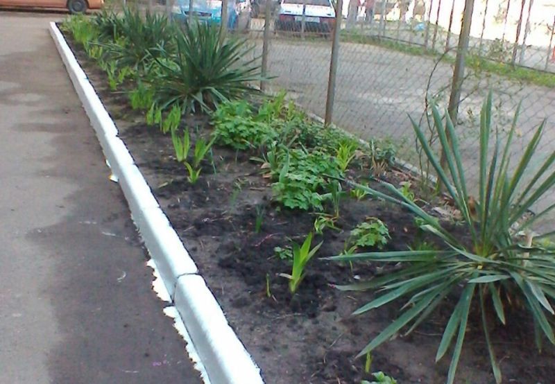 За 3 часа трудовой десант вскопал клумбы и палисадники, высадил цветы и кустарники, подбелил деревья и бордюры, покрасил лавочки и декоративные ограждения.
