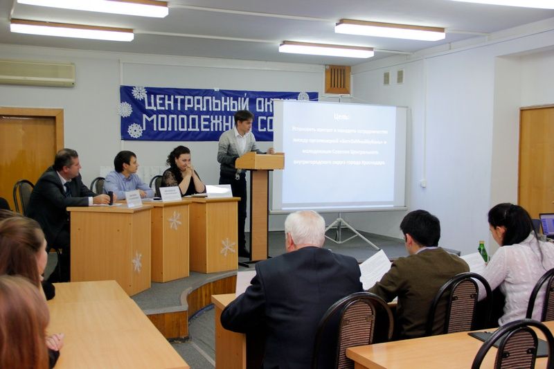В подтверждение к сказанному действующий председатель Совета Дарья Кулаева отчиталась за год работы. В 2012 году огромное внимание уделялось сотрудничеству с различными организациями, такими как исполнительный комитет КМО Партии «ЕДИНАЯ РОССИЯ», краевой фонд социальной защиты населения Краснодарского края, библиотека имени Некрасова, совет ветеранов Центрального округа, избирательная комиссия Краснодарского края, Центр переливания крови. Год запомнился туристическими походами, благотворительными марафонами, заседаниями «круглого стола», мероприятиями в ночных клубах, патриотическими акциями. Также в 2012 году силами молодежного Совета был создан молодежный политический клуб «Р.И.М.» (Решения. Идеи. Мнения.) и написан современный гимн молодёжи.