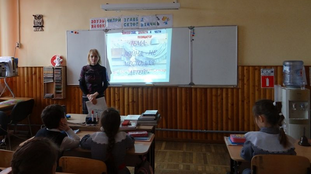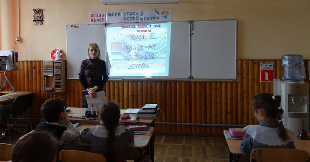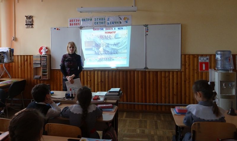 В начальной школе уроки были посвящены юным героям большой войны, их мужеству и патриотизму. Библиотекарь гимназии рассказала, как они мужественно сражались в партизанских отрядах рядом со старшими отцами и братьями, показала тематическую презентацию.