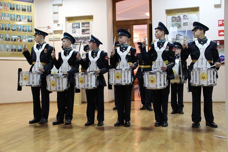 Началось мероприятие с выступления ансамбля барабанщиков «Ритм» Краснодарского президентского кадетского училища. Под руководством заслуженного артиста Кубани А.В.Володина юные виртуозы продемонстрировали свое умение владеть инструментами. Фееричное выступление вызвало живой интерес и собрало большую аудиторию из числа учащихся и профессорско-преподавательского состава университета.