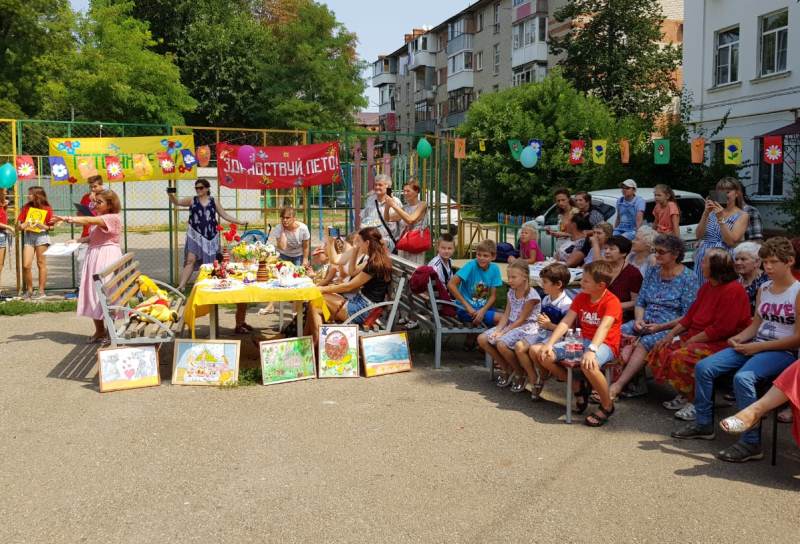 На импровизированной сцене на детской площадке 50 воспитанников детского клуба, мальчишек и девчонок из близлежащих домов продемонстрировали свои таланты в хореографии, вокале и актерском мастерстве. А юные художники открыли выставку декоративно-прикладного творчества. Картины, вышивки, мягкие игрушки – все работы ребята делали своими руками.