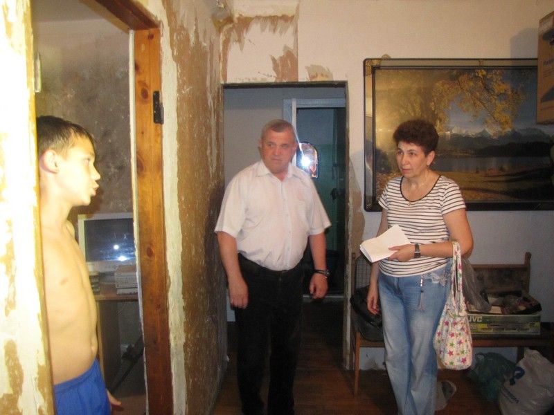 При посещении одной из семей Вячеслав Литвинов провел беседу с родителями, которые не на должном уровне исполняют обязанности по воспитанию двух детей, нигде не работают, квартира находится в антисанитарном состоянии.