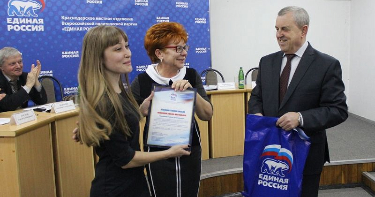 Галина Владимировна рассказала об участии в смотре-конкурсе на лучшую организацию внутрипартийной и агитационно-пропагандистской работы в первичных отделениях Краснодарского местного отделения партии.