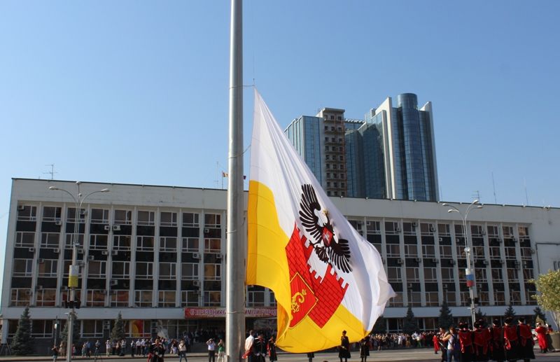 Полотнище размером 10 на 15 метров вынесли на площадь казаки Почетного караула Екатеринодарского районного казачьего общества. Водружение флага краевого центра на центральный флагшток проходило под звуки гимна Краснодара. Поднятие флага муниципального образования стало официальным стартом празднования Дня города.