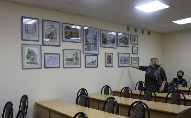 Лучшие полотна художников украсили малый зал окружной администрации.