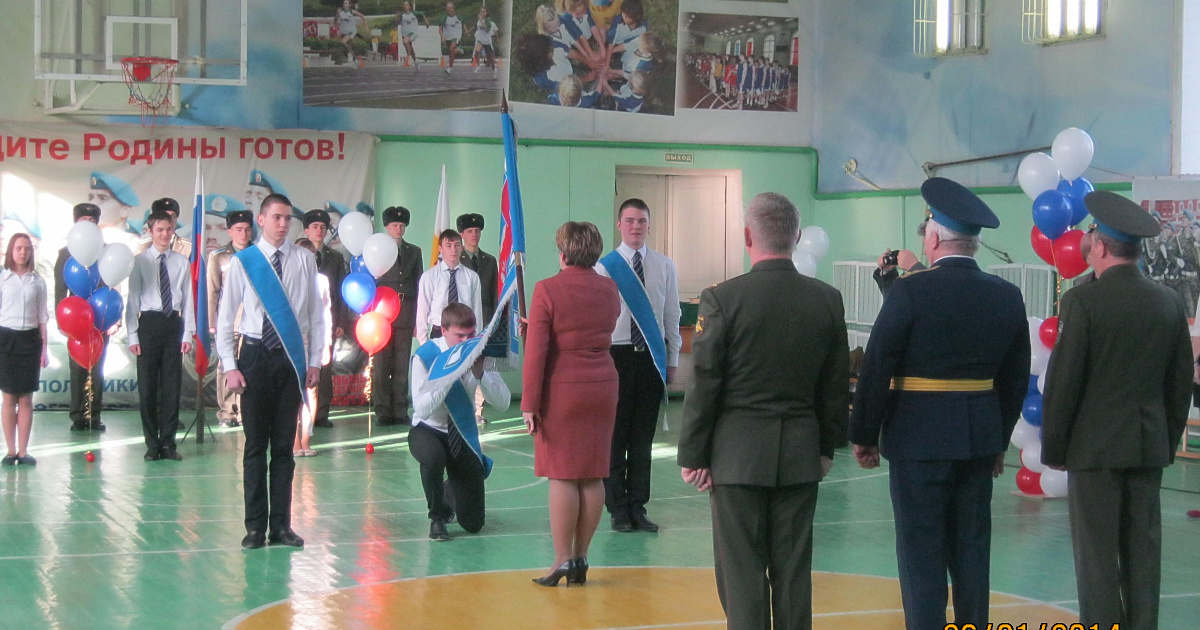 Офицеры-орденоносцы Краевой общественной организации ветеранов «Боевое братство» провели специальный ритуал прикрепления школьного знамени к древку и торжественно передали его учащимся. Школьного знаменосца выбрали из отряда «зарничников», им стал один из лучших спортсменов школы Руслан Богомаз. За военно-патриотическую работу школьный отряд занесен в золотую книгу города Краснодара.