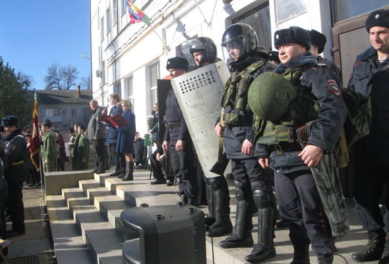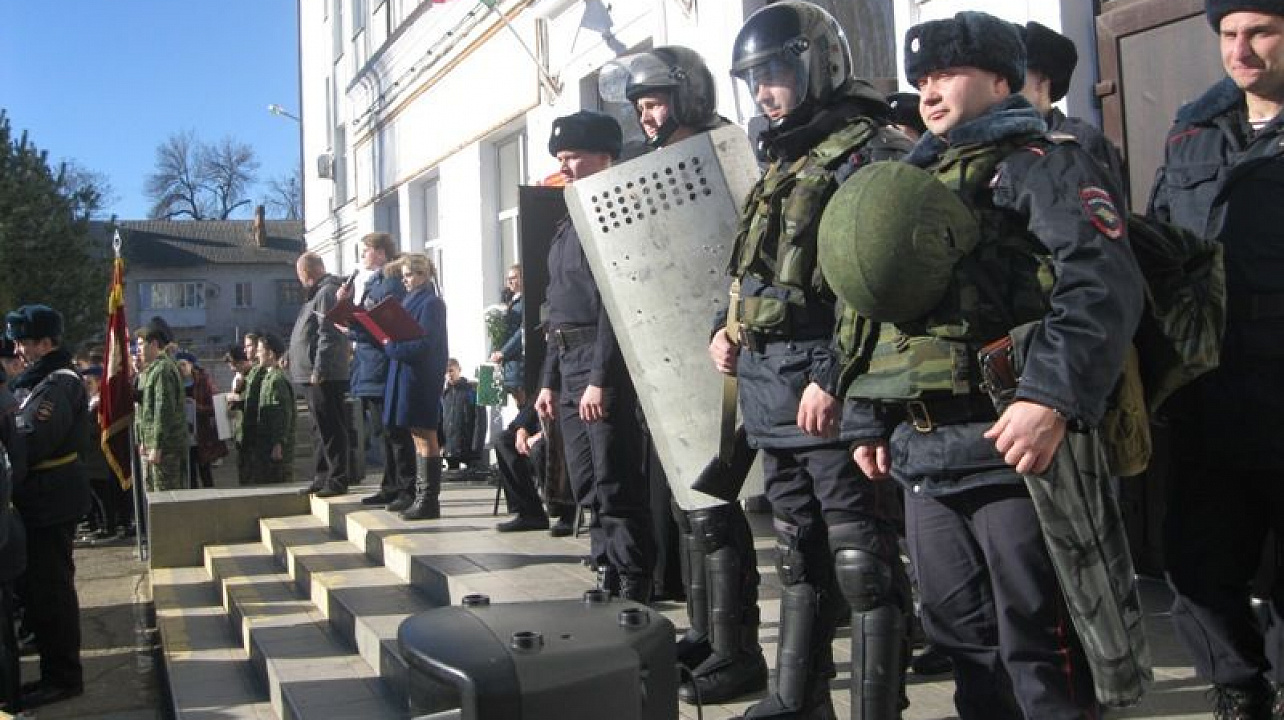 Бессмертный полк школы торжественно вынес знамя, прозвучали гимны России, Кубани и Краснодара. Кульминацией мероприятия стало показательное выступление сотрудников специального назначения.