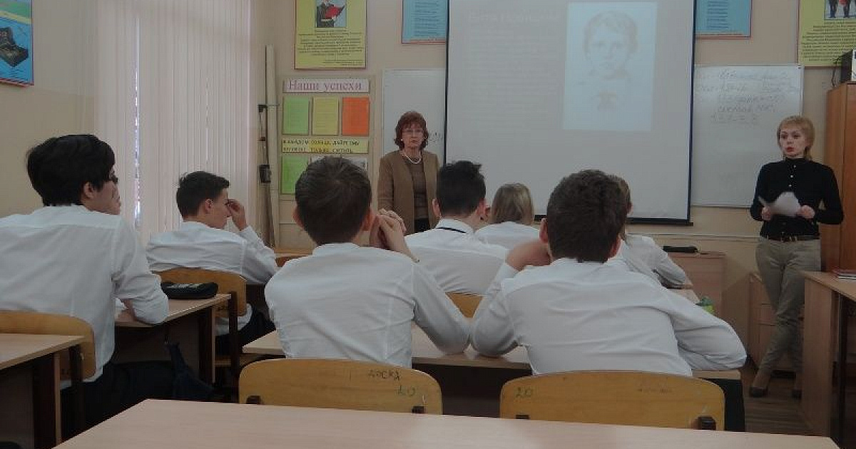 Преподаватели рассказали гимназистам о детях войны, о ровесниках, которые во время второй мировой войны совершали героические поступки. В частности, привели пример подвиг краснодарского школьника Владика Каширина. Когда началась война он перешел в 5 класс, взорвал склад боеприпасов фашистов и разминировал склад с зерном. Дошел с войсками до Будапешта. Погиб Владик уже после войны. В Анапе ему установили памятник.