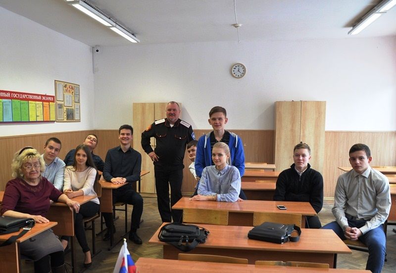 В лицее № 4 состоялась встреча учеников с помощником атамана Хуторского казачьего общества «Офицерская Казачья Сотня», есаулом, Василием Агеевым. Беседа прошла увлекательно, в форме диалога. Ребята задавали вопросы о патриотизме казаков, об их подвигах в годы войны, а также сами, с удовольствием, вели живую беседу, отвечали на задаваемые им вопросы. Среди учащихся были представители казачьих родов. В разговоре были затронуты многие вопросы об истории казачества, о Великой Отечественной войне, о значении казака как воина-защитника Отечества. Также обсуждалась роль казаков в современном мире. Школьники узнали об участии казаков в современной жизни. Общение прошло в теплой и дружественной атмосфере.