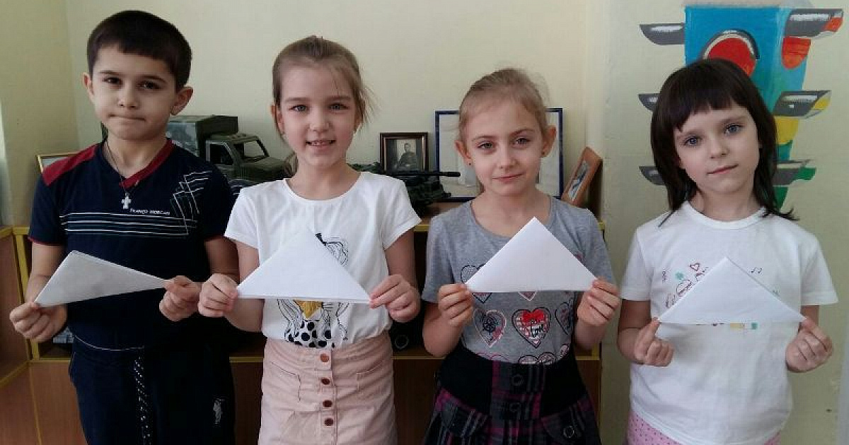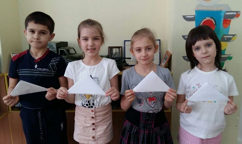 Педагоги вместе с детьми подготовительных групп и ветеранами ВОВ раздавали прохожим письма-треугольники, с призывом вспомнить о людях, защитивших страну от фашистских захватчиках. В ходе акции было роздано около 400 писем. А в заключение несколько писем привязали к белым шарам и выпустили в небо, как символ мира и добра.