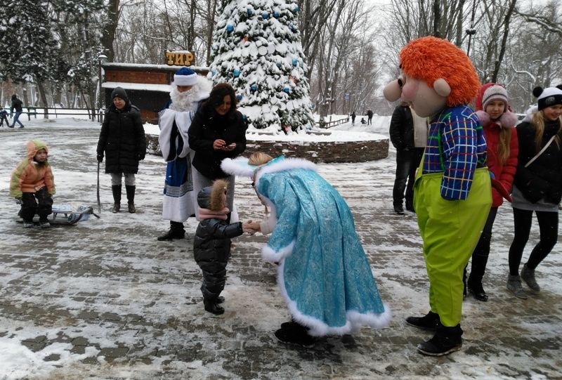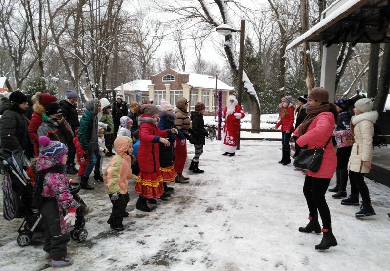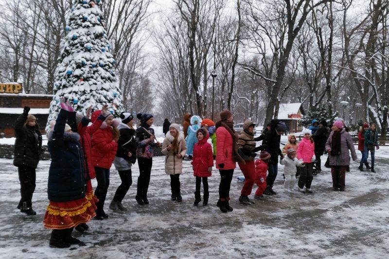 Несмотря на снег и мороз, гости парка активно включились в праздничное действо: пели, танцевали, водили хоровод вокруг елки. Ребята из вокального ансамбля МБОУ ДО ЦТР «Центральный» исполнили песню «Новогодние бубенцы».