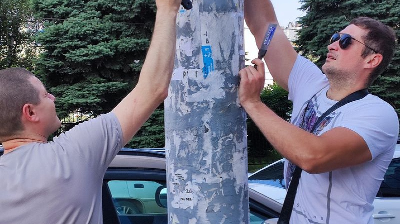 Муниципальные служащие красили заборы, очищали опоры, столбы и линии электропередач от незаконной рекламы и объявлений.