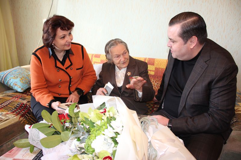 В 19 лет она пошла на фронт добровольцем. Рубежи Родины защищала в должности санинструктора 23-й моторизованной штурмовой инженерно-саперной Перекопской Краснознаменной орденов Суворова и Кутузова бригады РГК в составе Юго-Восточного, Сталинградского, Южного, 4-го Украинского фронтов. Победу встретила в Праге. Награждена орденом Отечественной войны II степени, медалями «За боевые заслуги», «За оборону Сталинграда», «За победу над Германией». Гости вручили Александре Николаевне подарки, пожелали крепкого здоровья, долголетия, тепла и заботы близких.