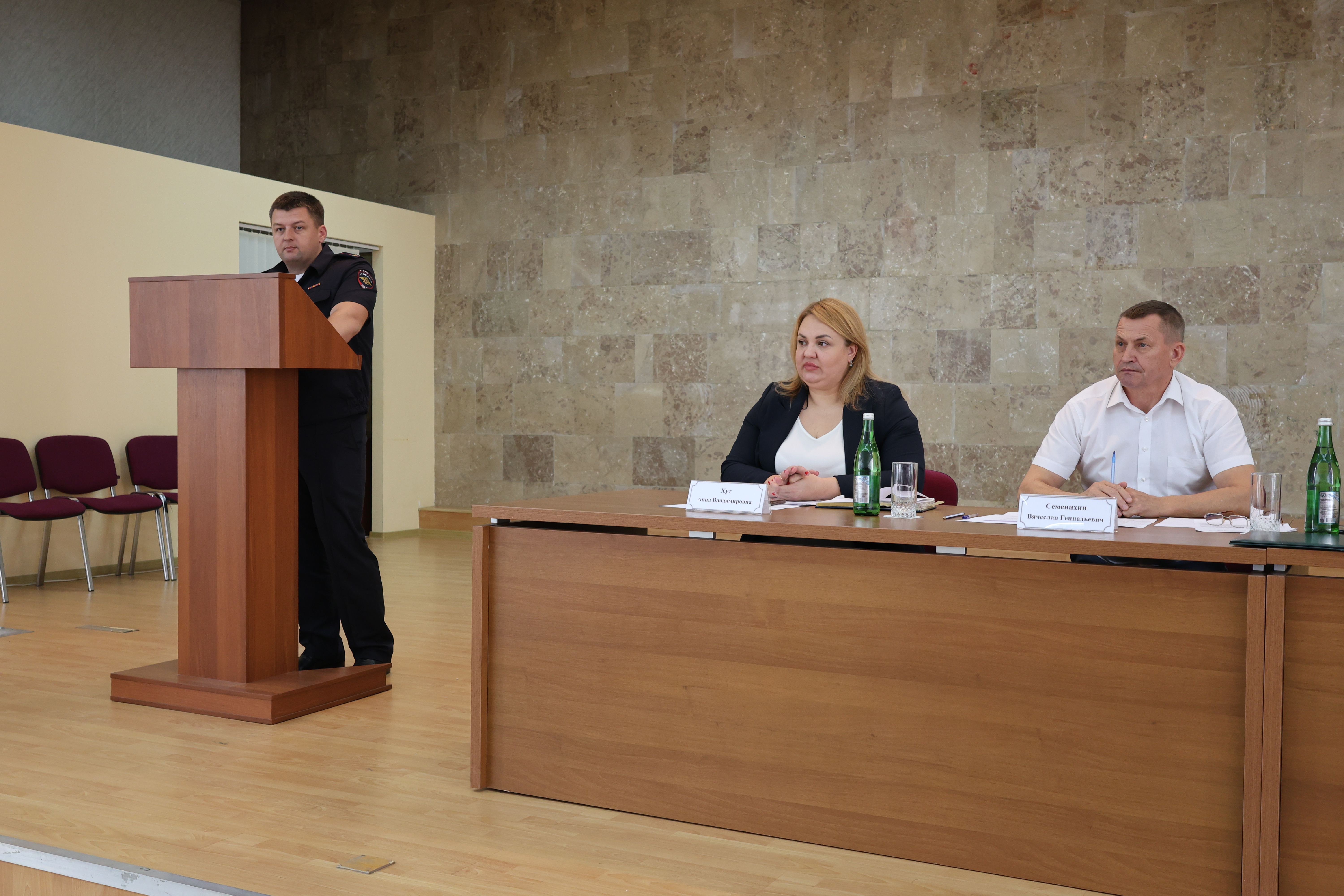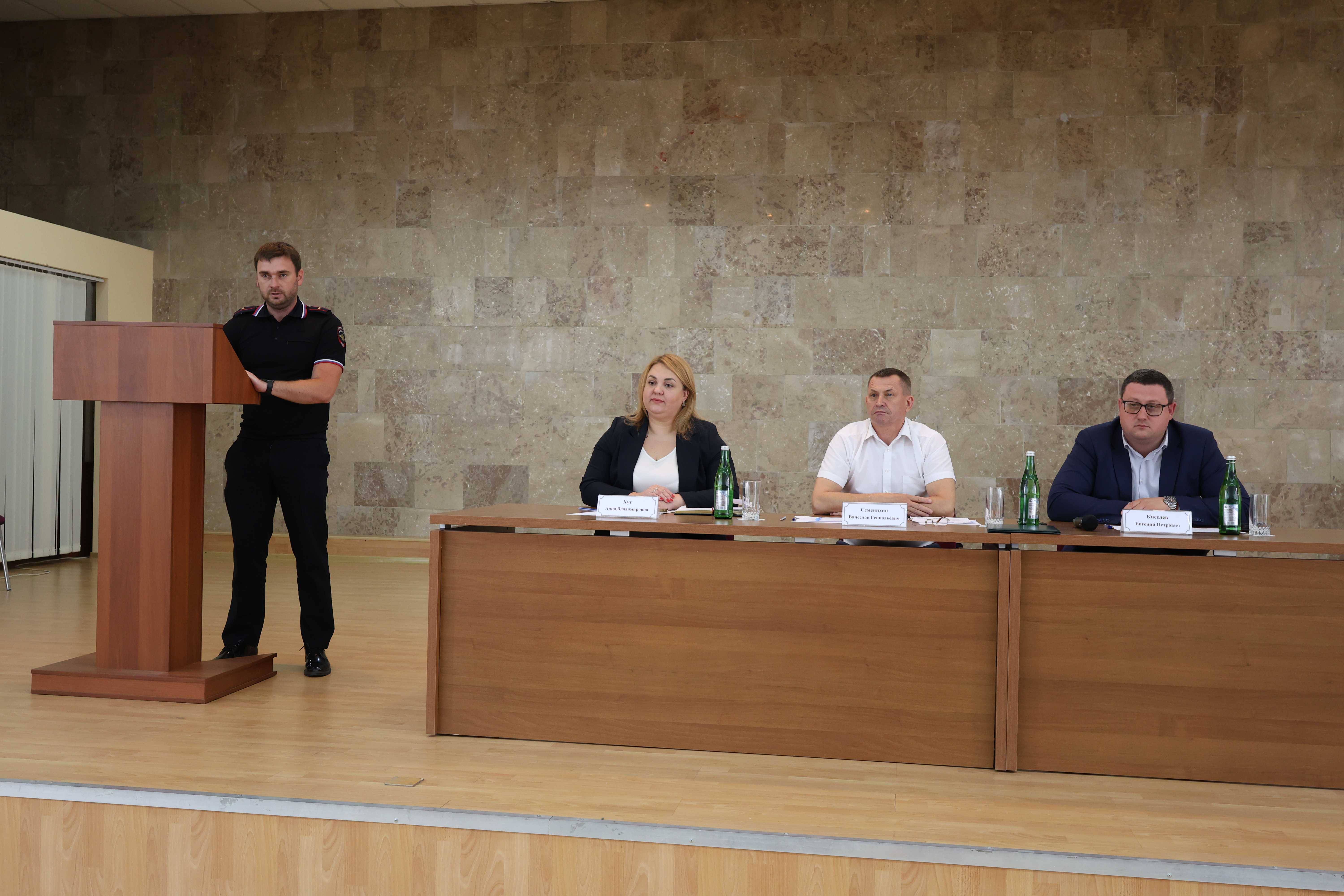 Второй блок вопросов касался безопасности. Перед собравшимися выступили заместитель начальника управления общественной безопасности и правопорядка администрации Краснодара Петр Азаряев, инспектор Управления вневедомственной охраны по г. Краснодару Олег Рысин, заместитель начальника отдела уголовного розыска Краснодарского линейного управления МВД России на транспорте Александр Каменщик, старший оперуполномоченный уголовного розыска отдела полиции Центрального округа Алексей Руденко.