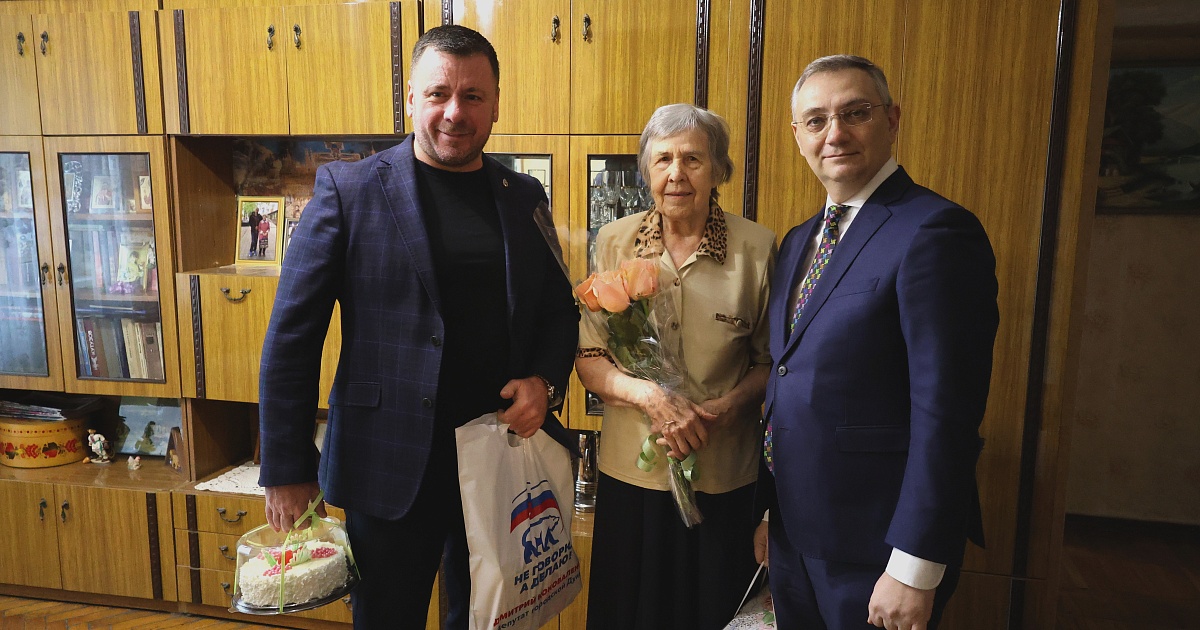 Первый заместитель главы администрации Центрального округа Сергей Громыко и депутат городской Думы Краснодара Дмитрий Коноваленко посетили на дому Марию Федоровну Полежаеву. Гости поздравили ее с