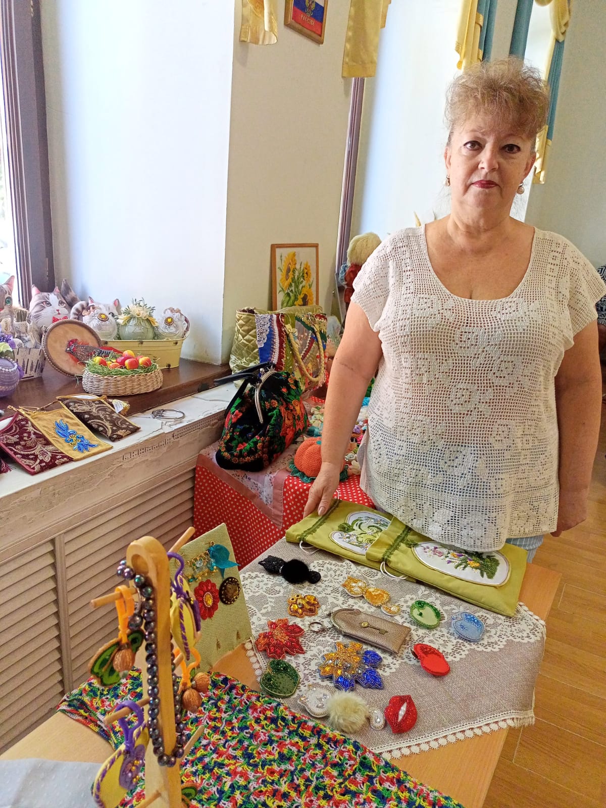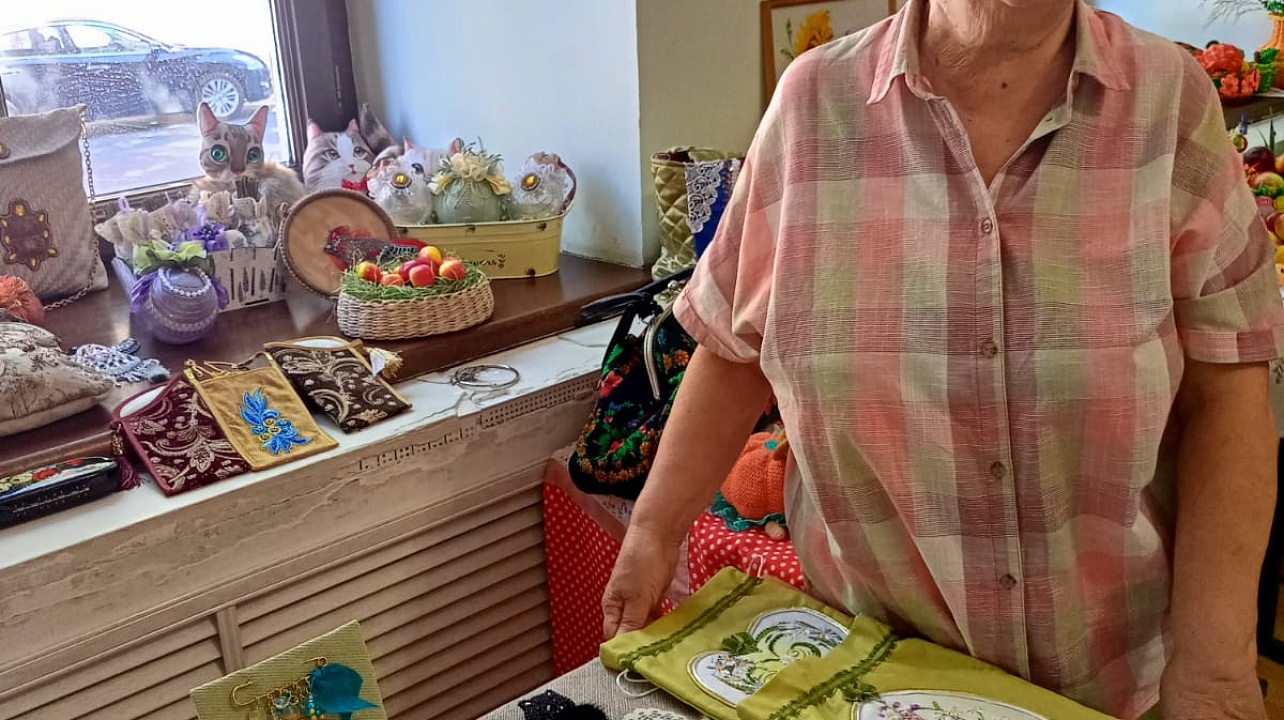 Свои работы представили члены организации – мастера декоративно-прикладного творчества. Общественники удивили жюри поделками из природных материалов, картинами из атласных лент, вышитыми в разных техниках и жанрах, украшениями из бисера и куклами ручной работы.