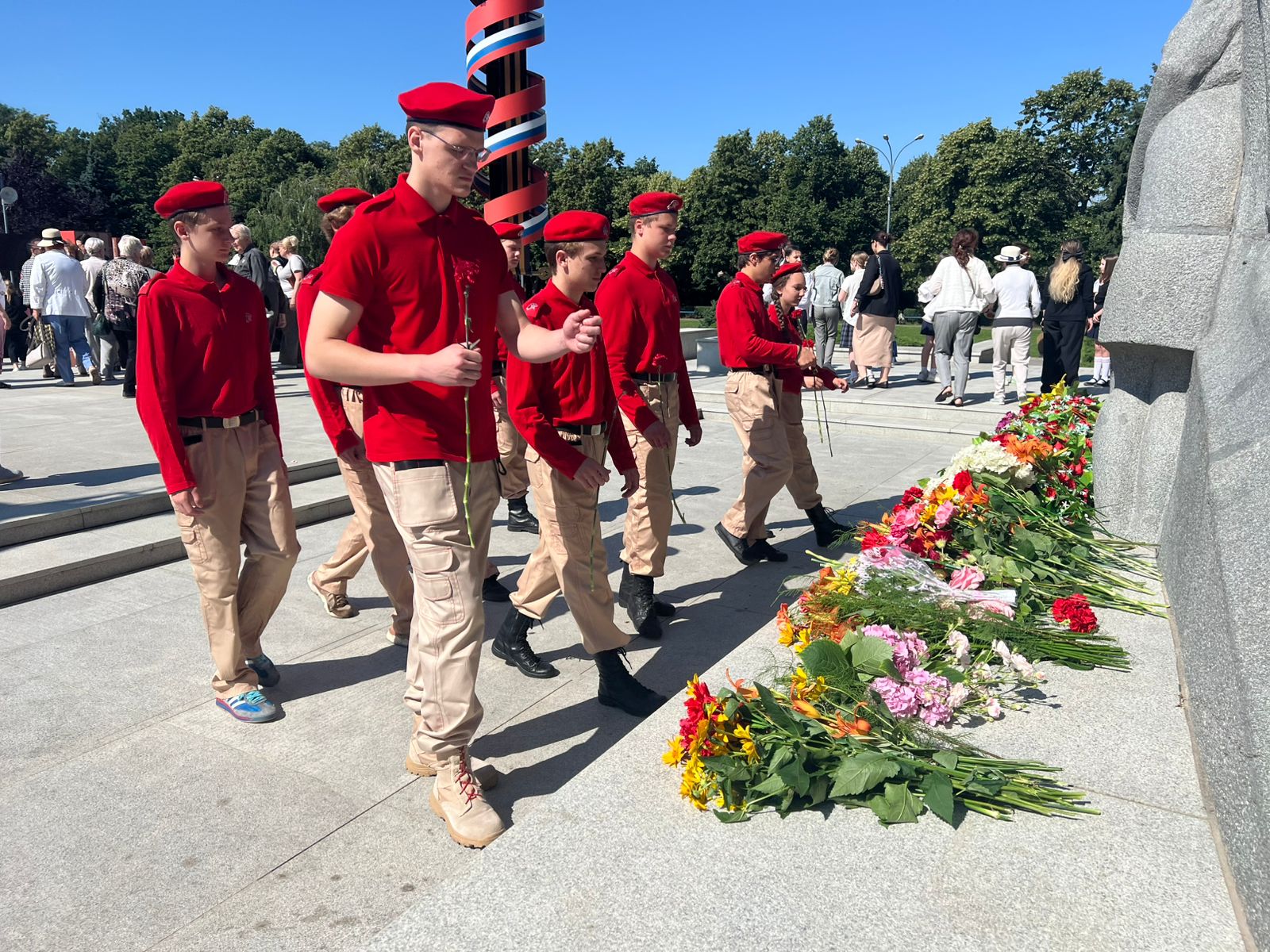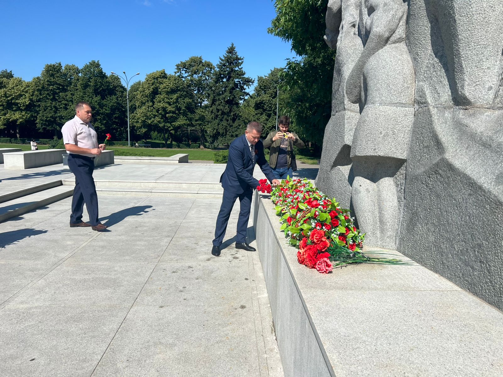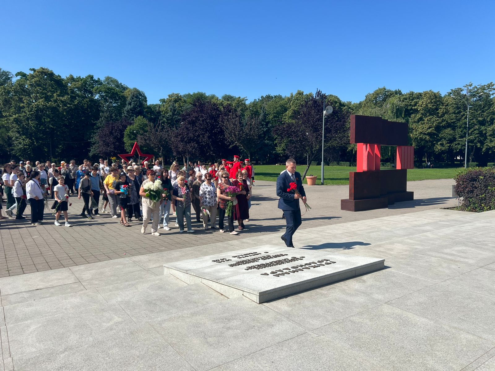 Церемонии возложения прошли сегодня у мемориала «Жертвам фашизма» в Чистяковской роще и у памятника