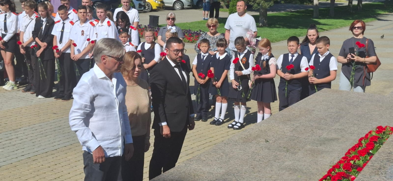 Присутствующие почтили память погибших в Великой Отечественной войне минутой молчания и возложили цветы к мемориалам.