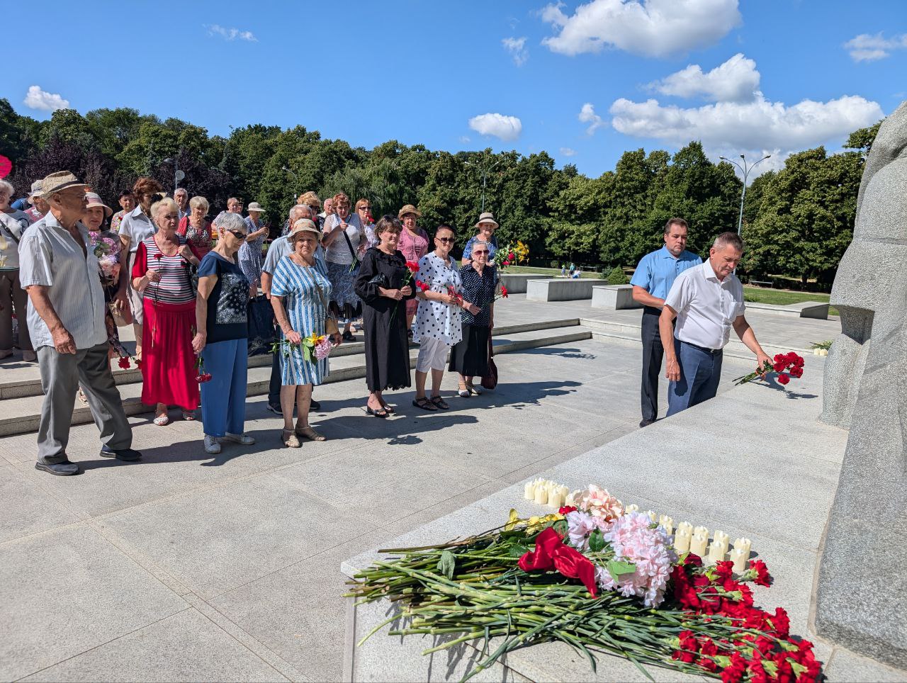Присутствующие почтили минутой молчания память погибших воинов на полях сражений, возложили цветы и гирлянды к мемориалам героев войны.
